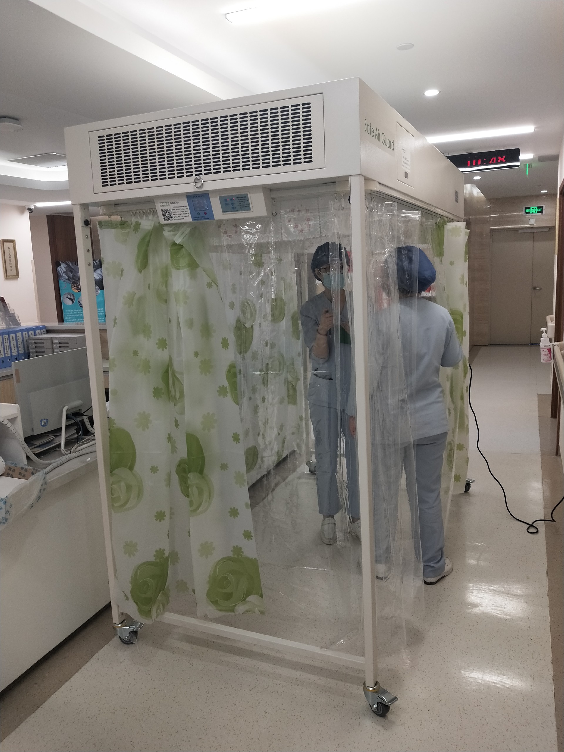顶部为空气净化系统,四周以高透明度的防静电塑胶垂帘围护。···